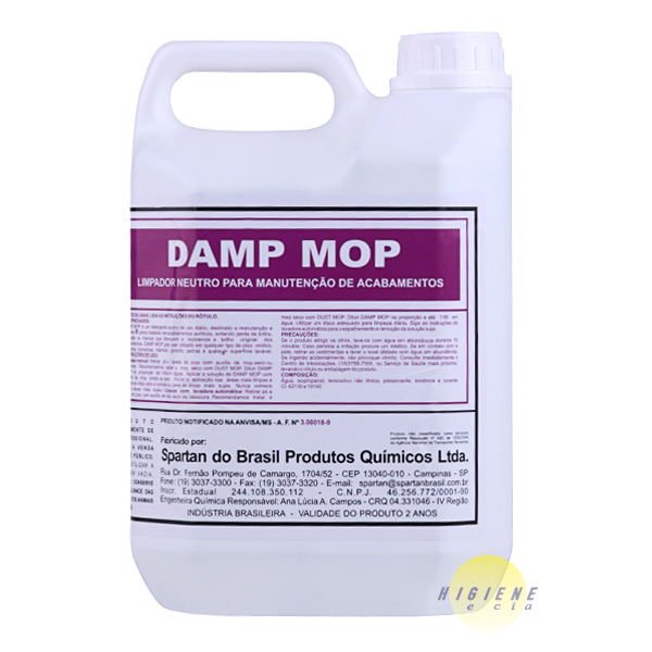 DAMP MOP é um detergente neutro de uso diário, destinado a manutenção e limpeza de pisos tratados com acabamentos acrílicos, evitando perda de brilho, turvação ou marcas que diminuem a resistência e brilho original dos acabamentos. DAMP MOP pode ser utilizado em qualquer tipo de piso: vinílico, cerâmica, borrachas, mármore, granito, pedras e qualquer superfície lavável.