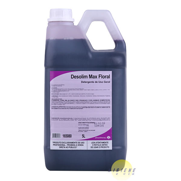 Detergente concentrado Desolim Max Floral é um detergente concentrado para limpeza e desodorização de ambientes, o que facilita sua estocagem e transporte. Sua fórmula permite que a ação perfumadora residual permaneça por mais tempo no ambiente. Desolim Max Floral é versátil pois pode ser utilizado para limpeza diária e conservação de pisos e superfícies laváveis com excelentes resultados.