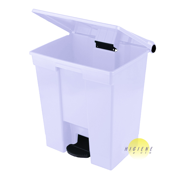 Tampa com sistema de abertura/fechamento através de pedal, que promove a vedação do coletor evitando a dispersão de odores e a contaminação por insetos, além de evitar os riscos de contaminação.