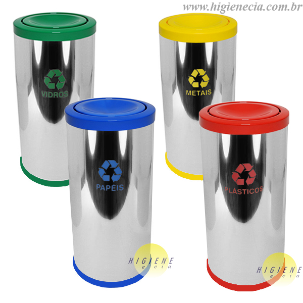 Com ou sem adesivos correspondente a cada tipo de material reciclável.